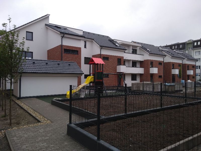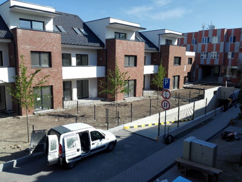 O projekte: Ide o 10 radových rodinných domov s 29 bytovými jednotkami. Radová zástavba je navrhnutá v dvoch pásoch, čím sa vytvorí poloverejný vnútroblok s komunikáciou – prístup k druhému radu domov. Celý komplex je riešený formou kondomínia, kde v každom rodinnom dome sú navrhnuté tri byty /spodný s priľahlou záhradou/, s podzemnou parkovacou garážou /32 parkovacích miest/, doplnené parkovacími miestami na teréne. Parkovacia garáž je celá pod úrovňou terénu. Na streche garáže je zeleň, v rámci ktorej je vytvorená oddychová zóna s detským ihriskom. Horná stavba je navrhnutá kombinovaná zo železobetónu, z murovaných tehelných stien a z dreveného krovu. V rodinných domoch sú obvodové, vnútorné a deliace AKU steny navrhnuté murované z tehál. Vodorovné nosné konštrukcie – stropné dosky a prievlaky sú železobetónové, monolitické.
